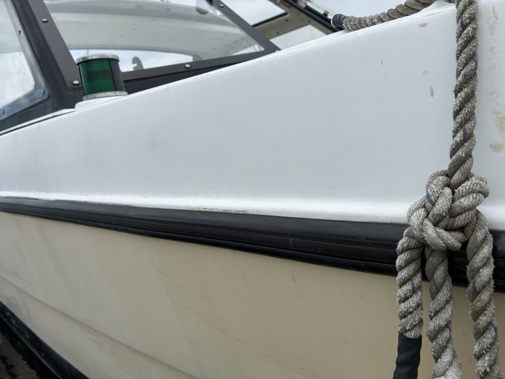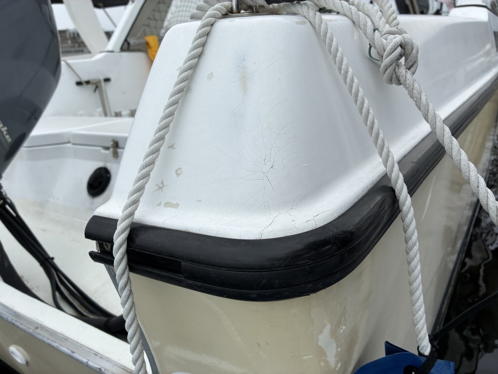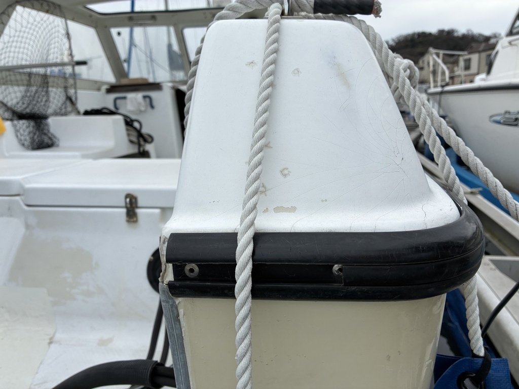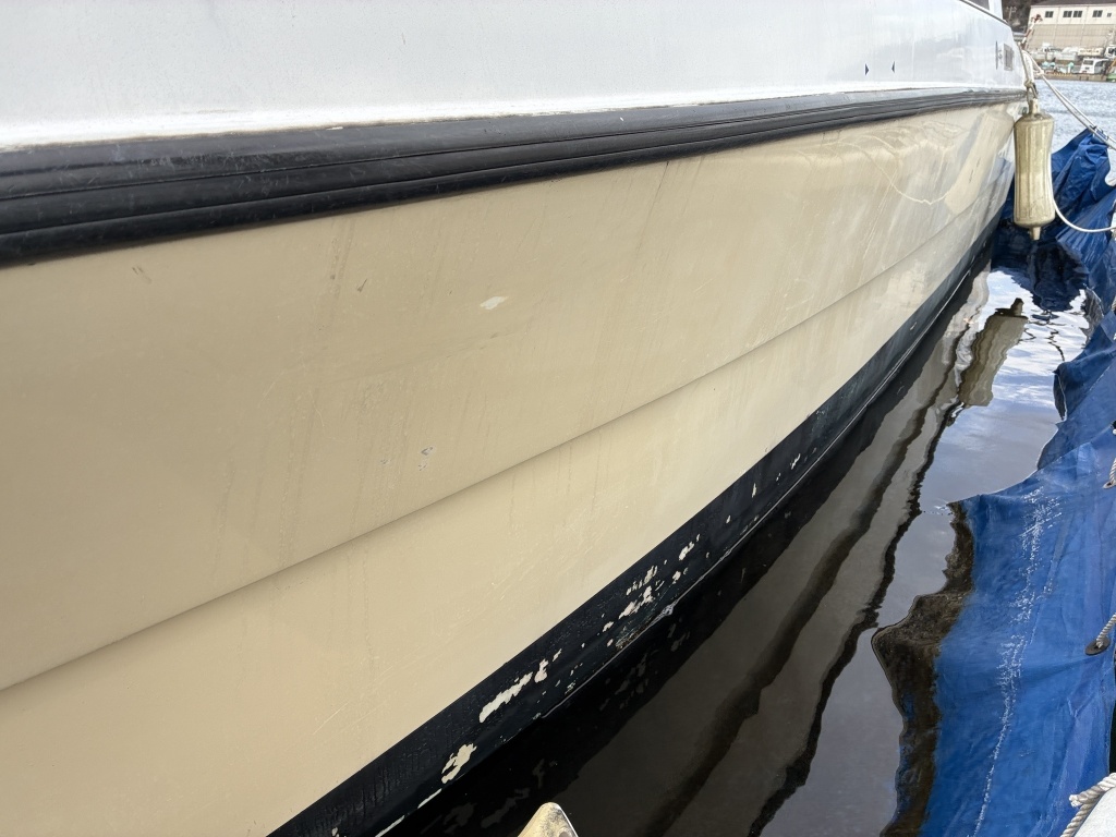 ハル周りは、年式的に旧い艇ですのでどうしても汚れやキズが多いですが、補修が必要な致命的な部分はないかと思います。