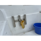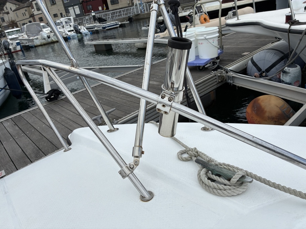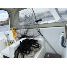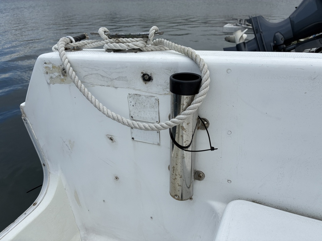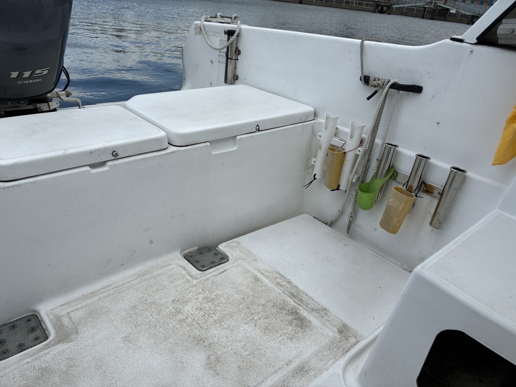 また、現オーナーさんが安全性と利便性を考慮しバウデッキに高さのあるハンドレールを取り付けておりますので、釣行時や船の乗下船にも嬉しいアイテムです。