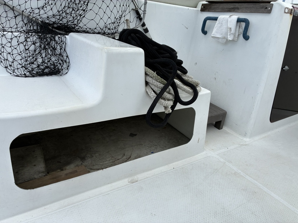 カディの前方左舷側の物入れにマリントイレが設置されております。