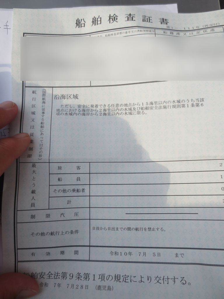 | 定員 | 3人 | 次回船検 | 本検査(2028年07月05日) |