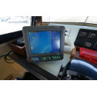 5年前のエンジン装換の際にメーターパネルも新しくなっています。アワメーターは2,396時間。3月末までは漁に出ますのでアワーはもう少し伸びます。GPS魚探はホンデックスのPS‐800GP。