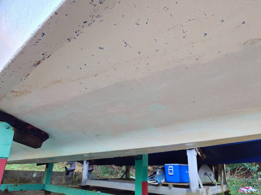 船底の状況は悪くないと思います 過去には船底塗装の歴もありそうですが、現在はケレンして白でペイントされています