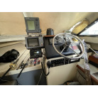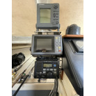 キャビン内操船席前には、レーダー、GPS・魚探などの航海計器類と計器類が収まっています。
