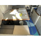 操船席右舷側がキャビン入り口になります、キャビンは大変明るくなっていました。
