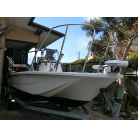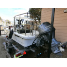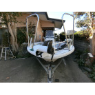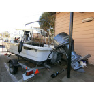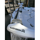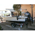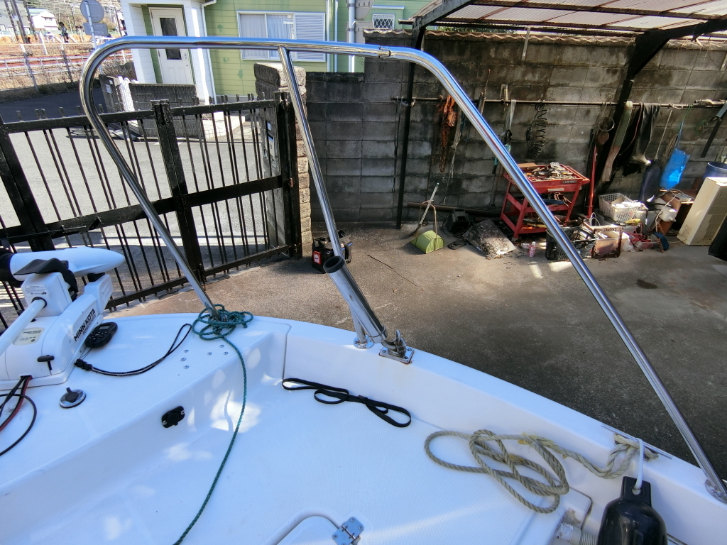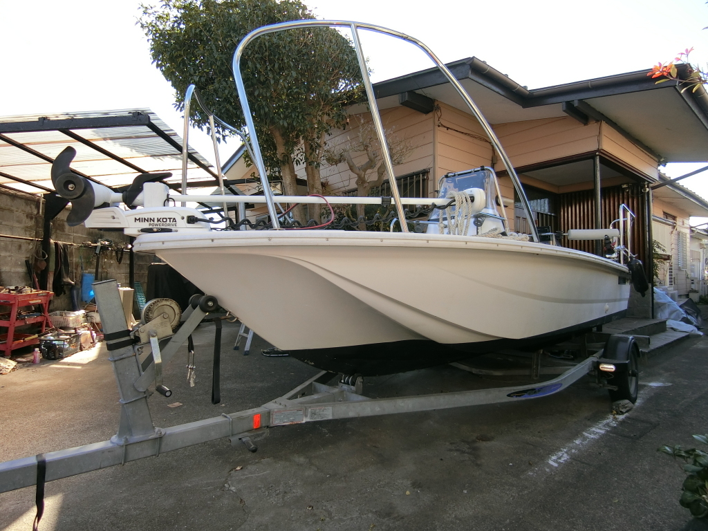 大変コンパクトに纏まったトレーラブルで、ミンコタ(i-pilot)やロッドホルダー、デッキ前後の大型レール、GARMINの魚探など釣り装備満載の艇です。