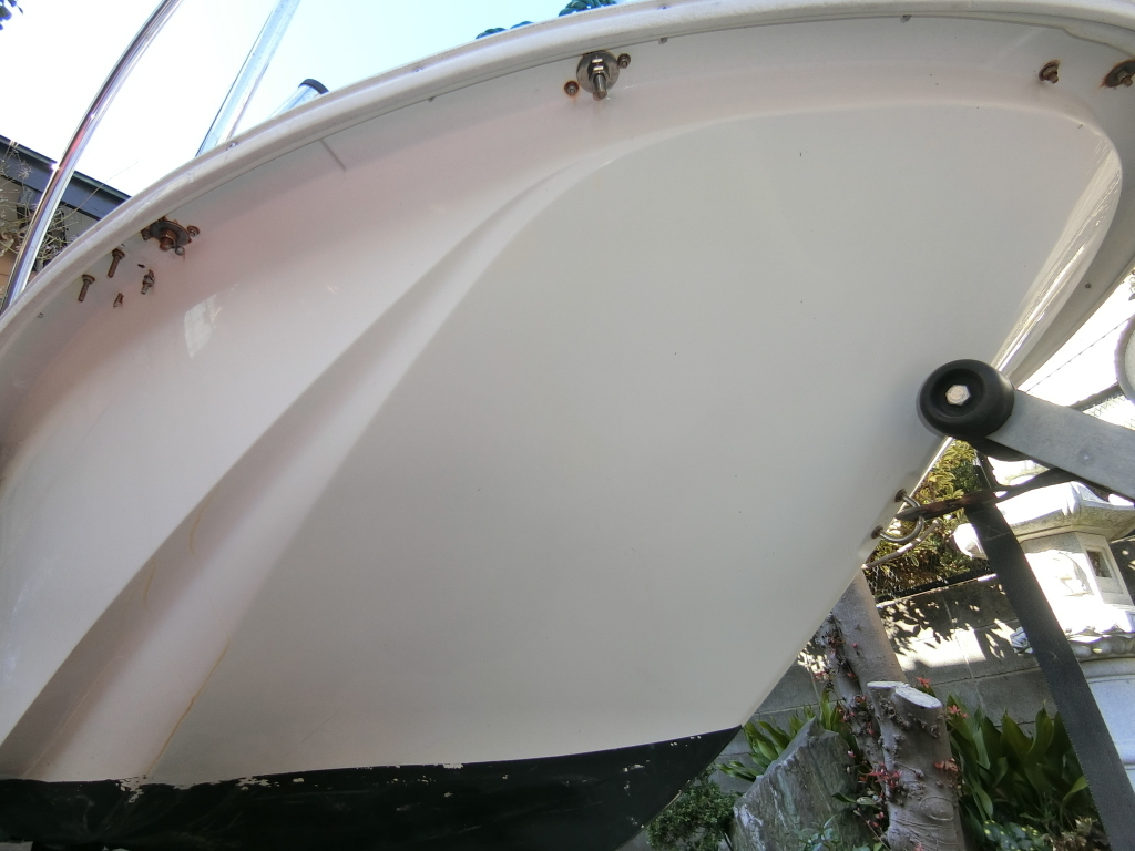 左舷側に1っカ所FRPの欠けが見られますが、他には擦り傷程度で大きな傷なく良好です。