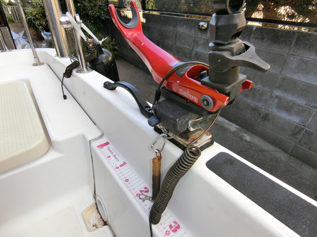 ・デッキ船首部にミンコタ(i-pilot)が装備されており、バッテリーは船尾ロッカー内に装備されておりました。
