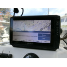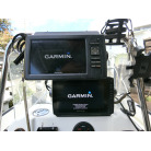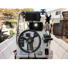 ・センターコンソールタイプの操船席はガーミンの魚探が2つ、計器はタコメーター、アワーメーター、燃料計を装備します。