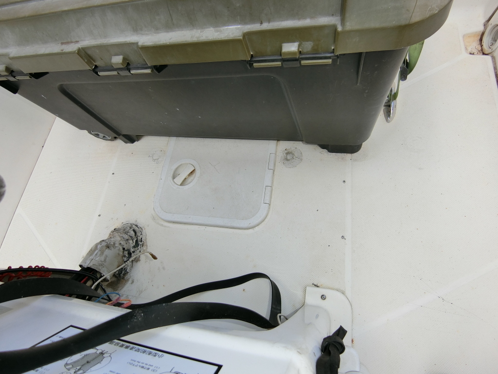 ・大き目な収納BOXを操船席として設置され、BOX内は備品類が収納されております。