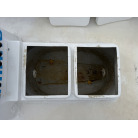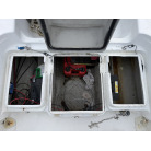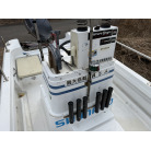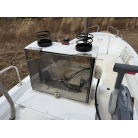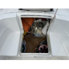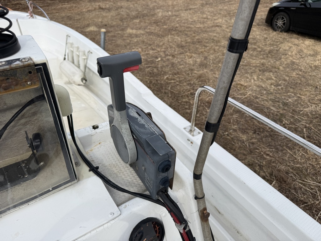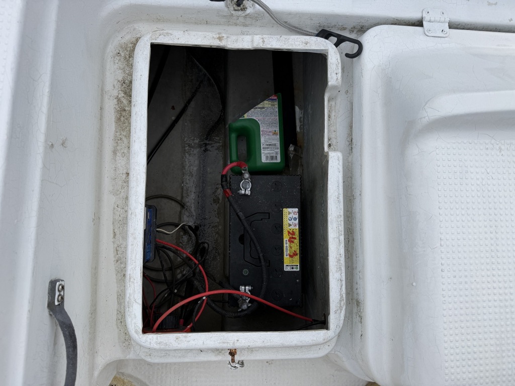 コンソール周りは、タコメーターの他は魚探用のケースのみのシンプルな装備となっています(魚探一式は取り外しますが、保管用ケースのみそのままでのお渡しとなります)。