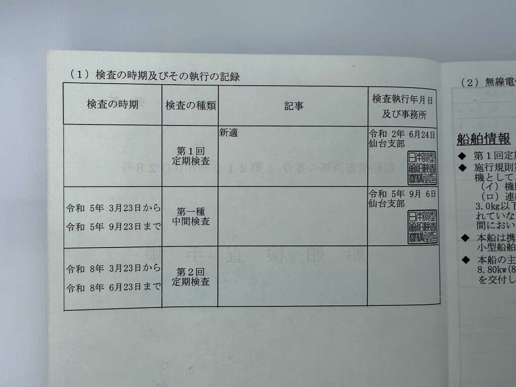 | 定員 | 5人 | 次回船検 | 本検査(2026年06月23日) |