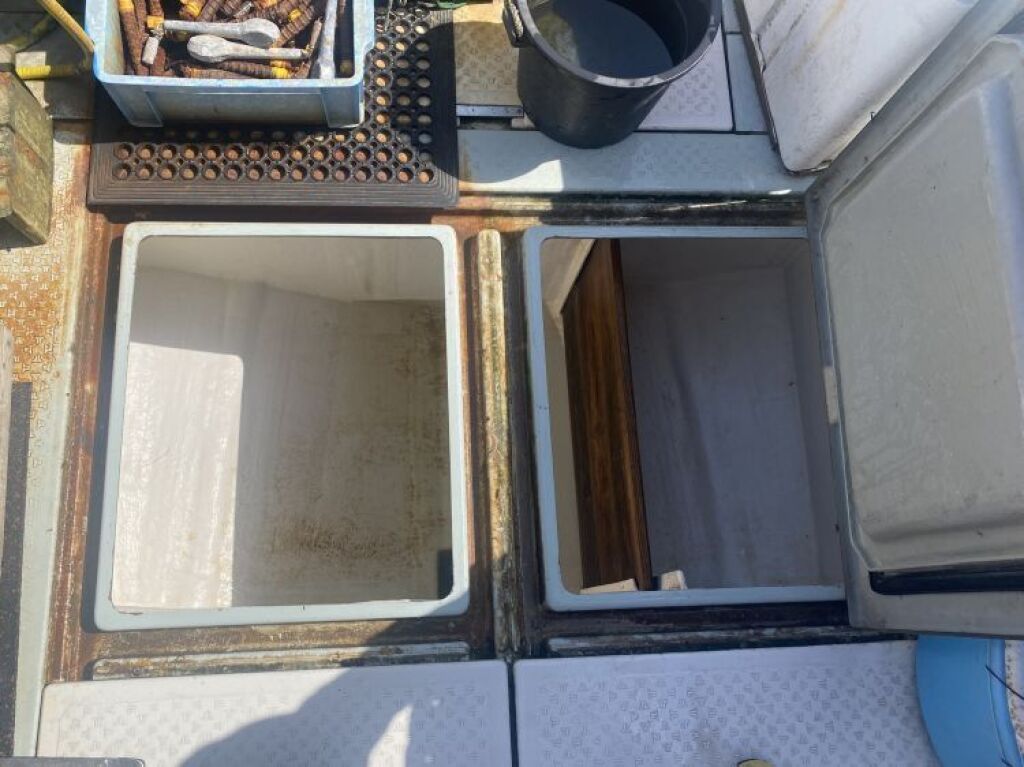 アフトデッキ下の収納庫は、3カ所は氷室としても使用でき2カ所はイケスとなっています。