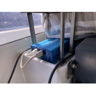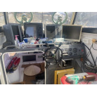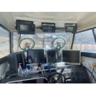 操船席周りは、備え付けられている計器類の他にGPS、魚探、レーダー、潮流計、3連リモコンなどが設置されています。