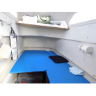 室内は広々としてきれいに保たれています。床板を外すとマリントイレが設置されていてしっかりと稼働しています。床下の収納スペースもありそうです。