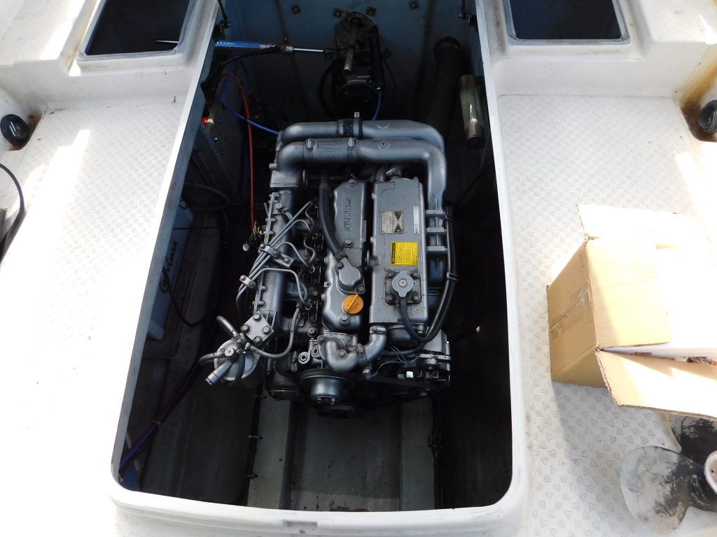 機関室もエンジンもとてもきれいな状態です。オイル漏れ、ビルジ等も全くありません。エンジンは一発始動でエンジン音も冷却水の吐出も良好です。アワーメーターがなく稼働時間はわかりませんが不具合もなくまだまだこれからのエンジンでしょう。