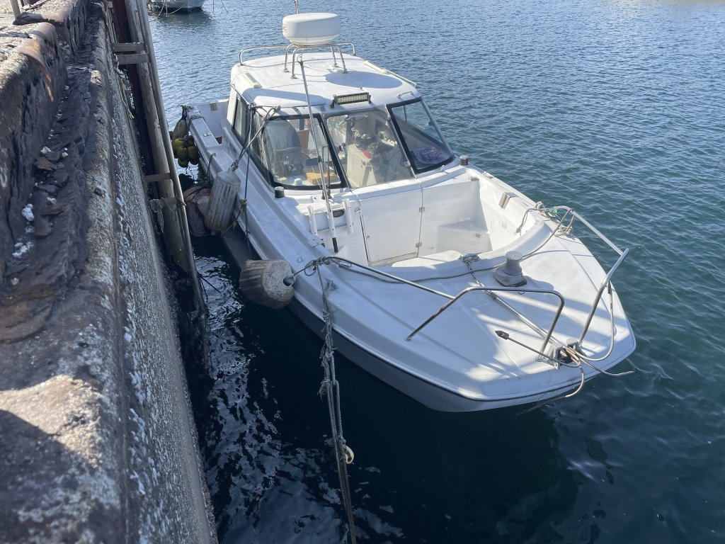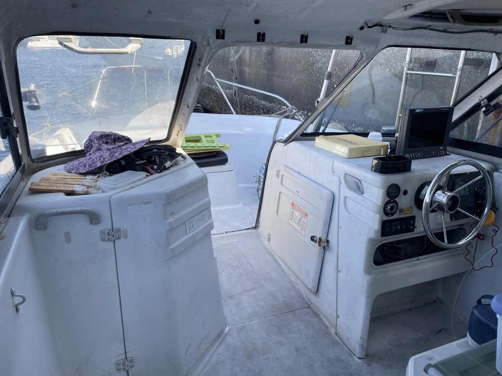 ハル周りは、年式、係留による小傷やシミなど見られますが、大きな破損箇所はなく、しっかりした状態と思われます。