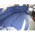 室内のシ-ト、クッション類はブラウンの絨毯にブル-ソファ-のコントラストは