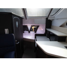 室内中央のテーブルは電動昇降式なのでフラットにすればベットにすることが可能です。