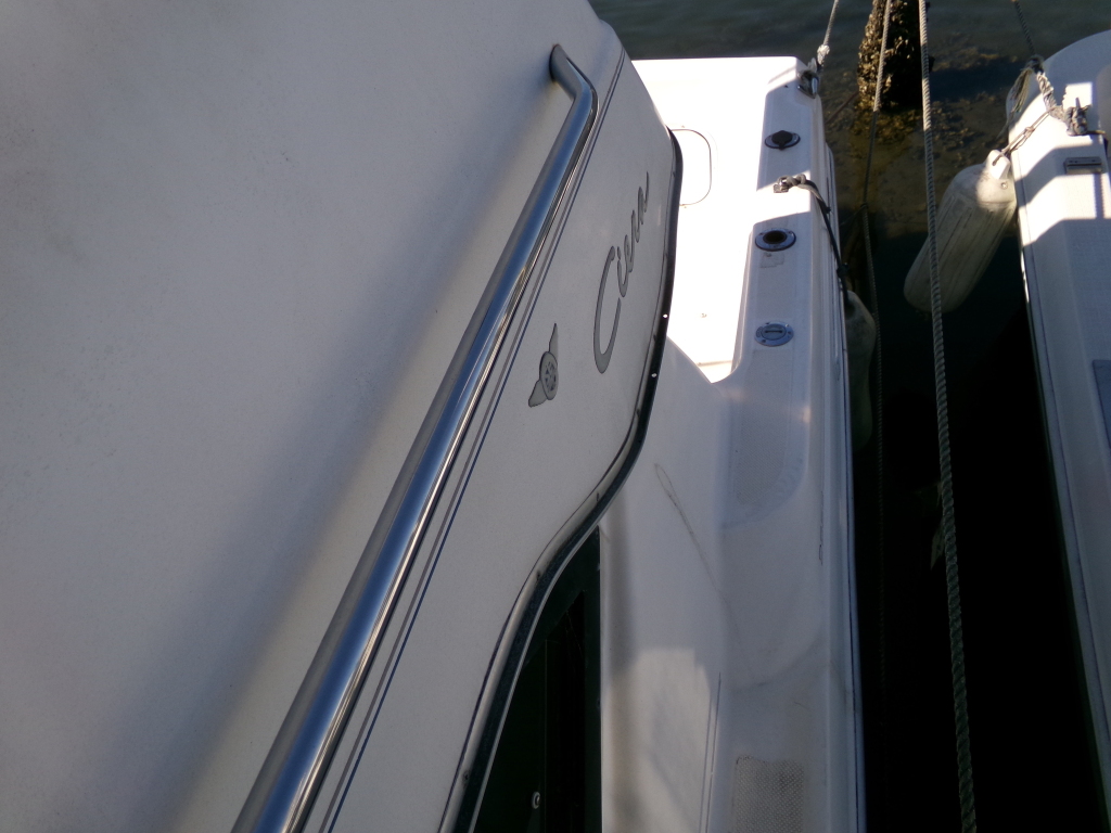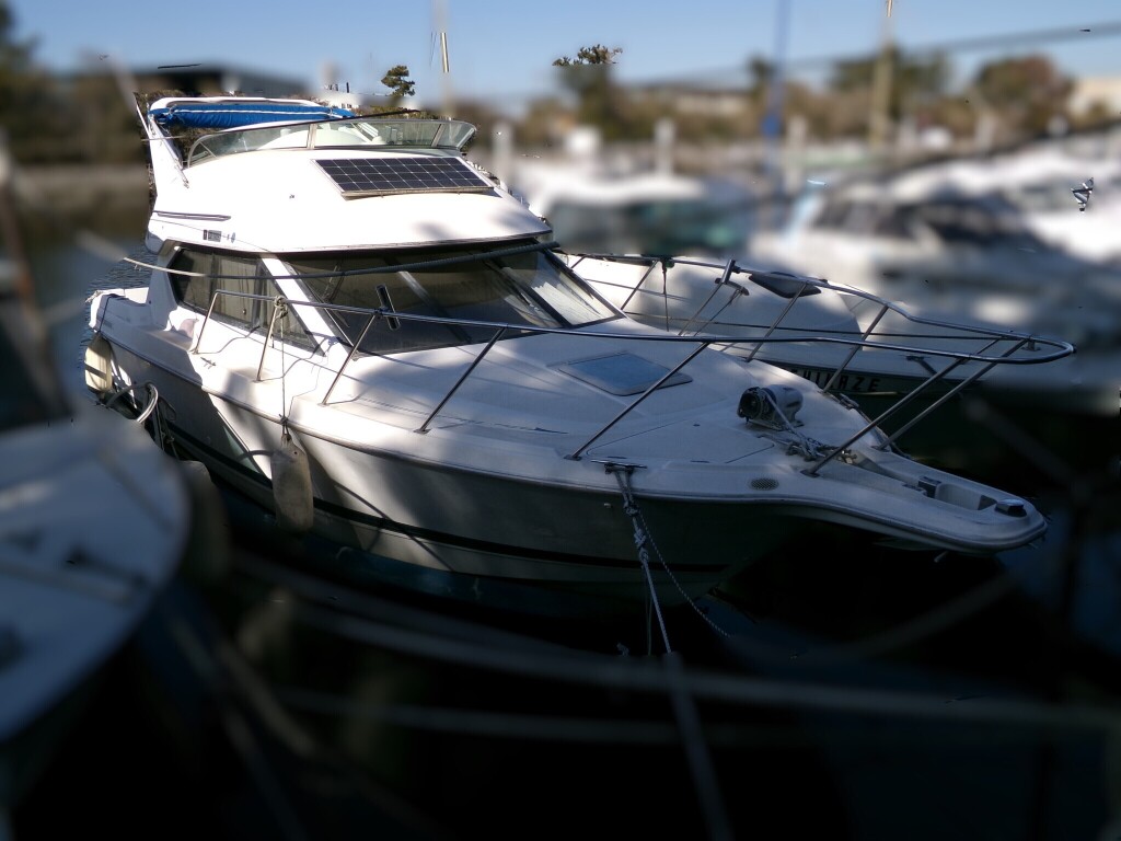 本艇「2858 Ciera」は、30フィート未満クラスでフライブリッジ(コマンドブリッジ)を搭載した非常に希少なモデルです。