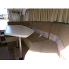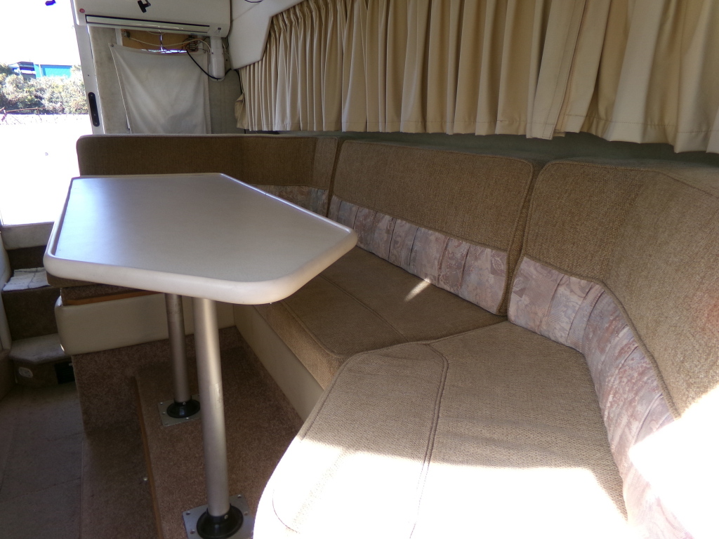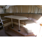 室内レイアウトはスペース効率に優れ、操船席とリビングスペースを背もたれの可動によって切り替え可能。