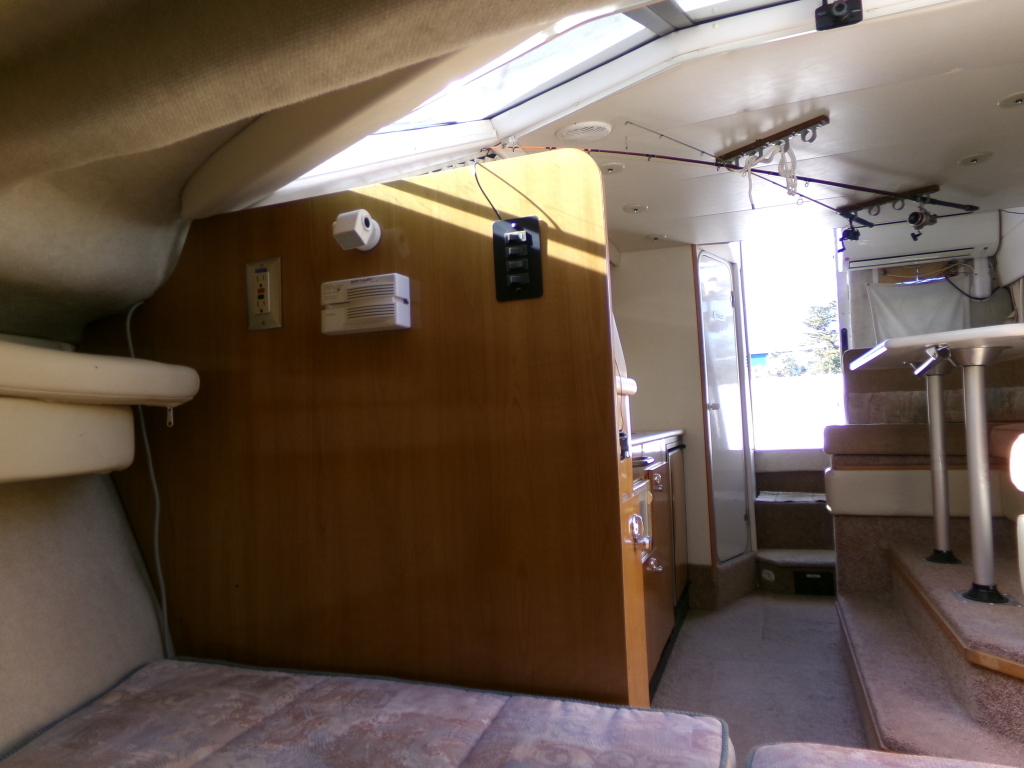28フィートクラスながら、アッパーヘルム(FB)とロアヘルム(キャビン内)の両方で操船できるツインステーション仕様となっています。