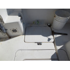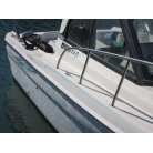 セミウォークラウンドデッキです。サイドウォークには適所にハンドレールがある為、移動に際してそれほど危ないとの印象はありませんでした。釣りとクルージングを両立した造りとなっています。