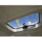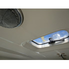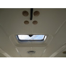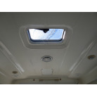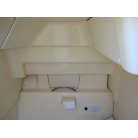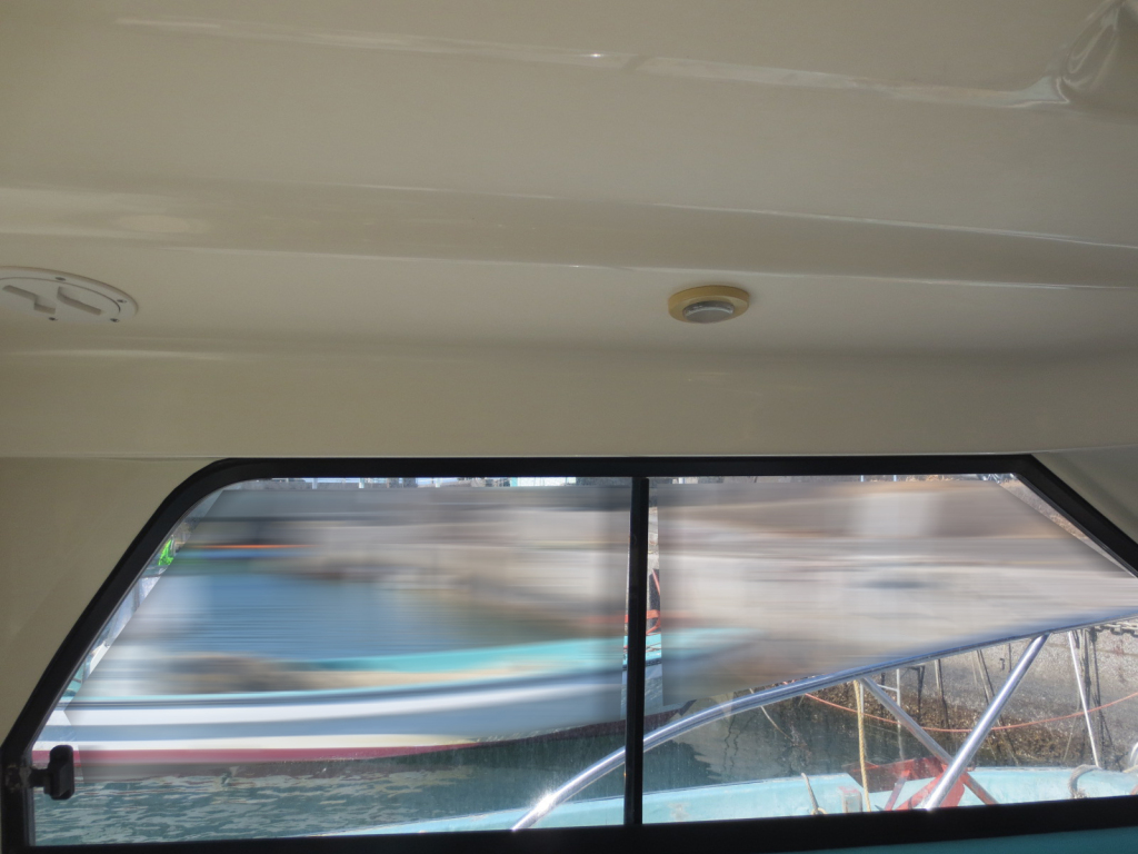 左舷側にはコンパクトな対面ソファがあり、クルージングやポイントまでの移動時にお休みする事も可能な造りです。取材時に一見したところ、窓や壁面に水漏れ跡も無い感じでカビ臭さ等も感じませんでした。