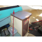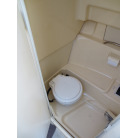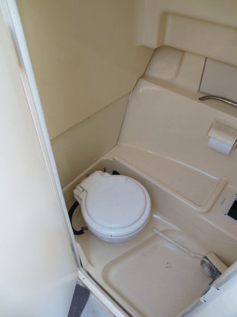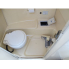 前方室手前右舷側には独立したドアのあるトイレスペースがあります。電動のスモールボウルを備えています。動作確認は出来ていません。