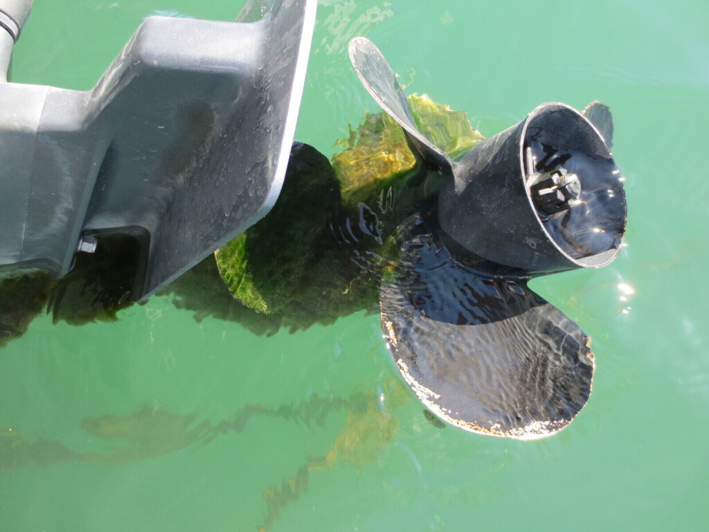 係留時に水面から全てが上がる造りでは無い為、係留時の汚れが付着していました。