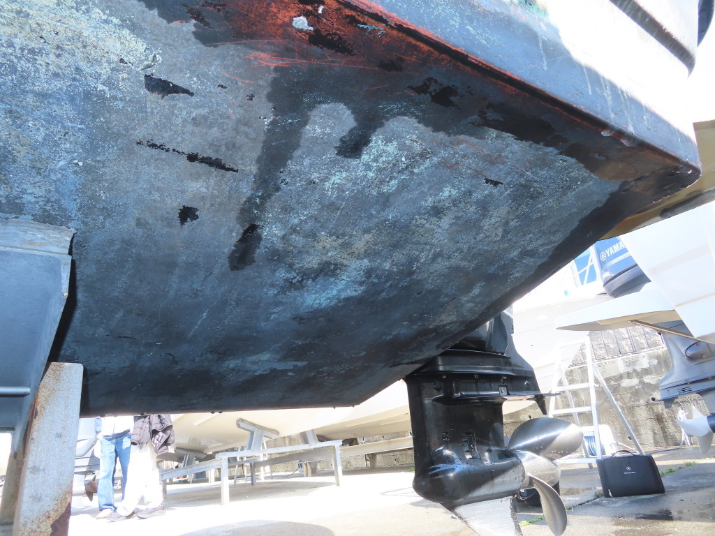 船底に補修されたような跡がありますが、現オーナー様が購入時からあったそうで、詳細は分らないそうです。
