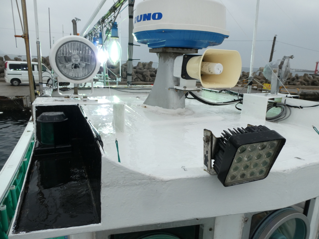 30kwの発電機を搭載していて、2kwのメタハラ集魚灯を12灯装備していますので、