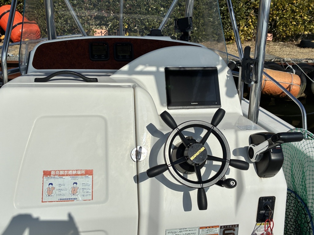 使用時間の少ないエンジンとガーミンのタッチスクリーンGPS魚探が付いたこのボートで快適な釣りライフを楽しみませんか?