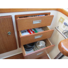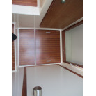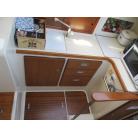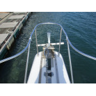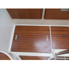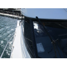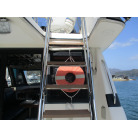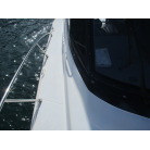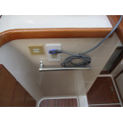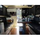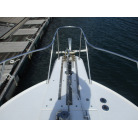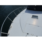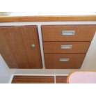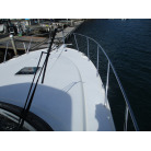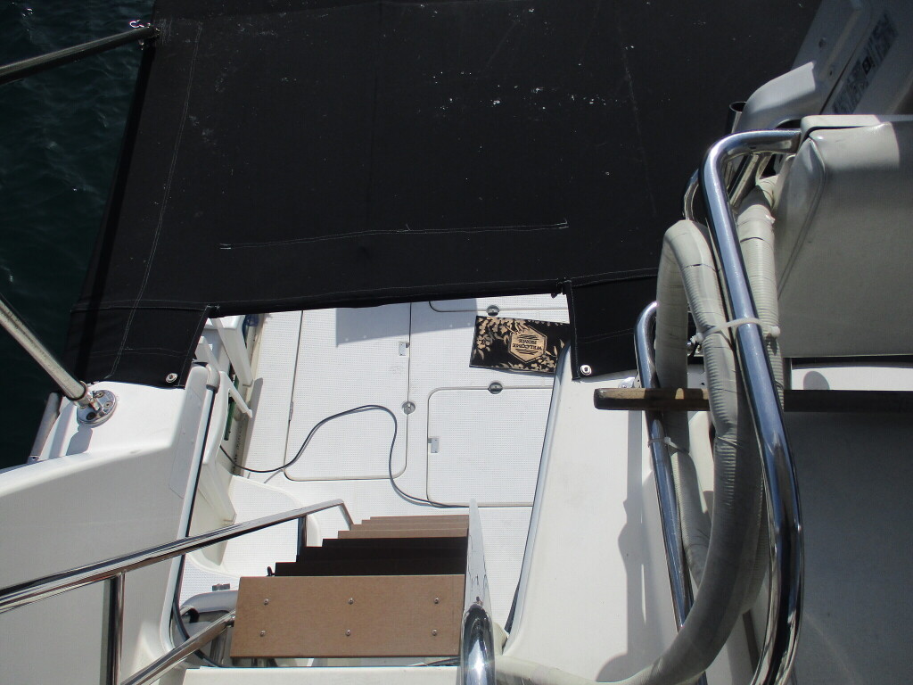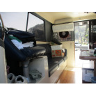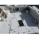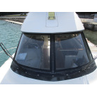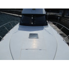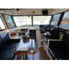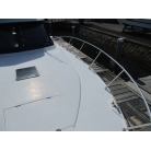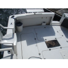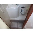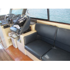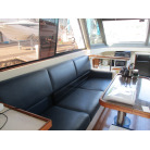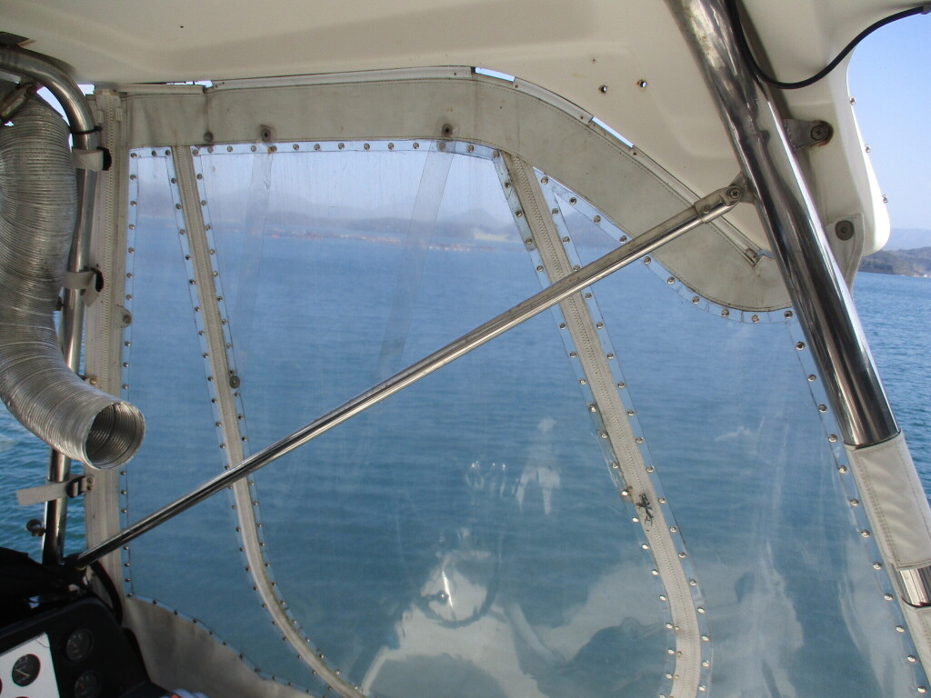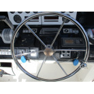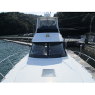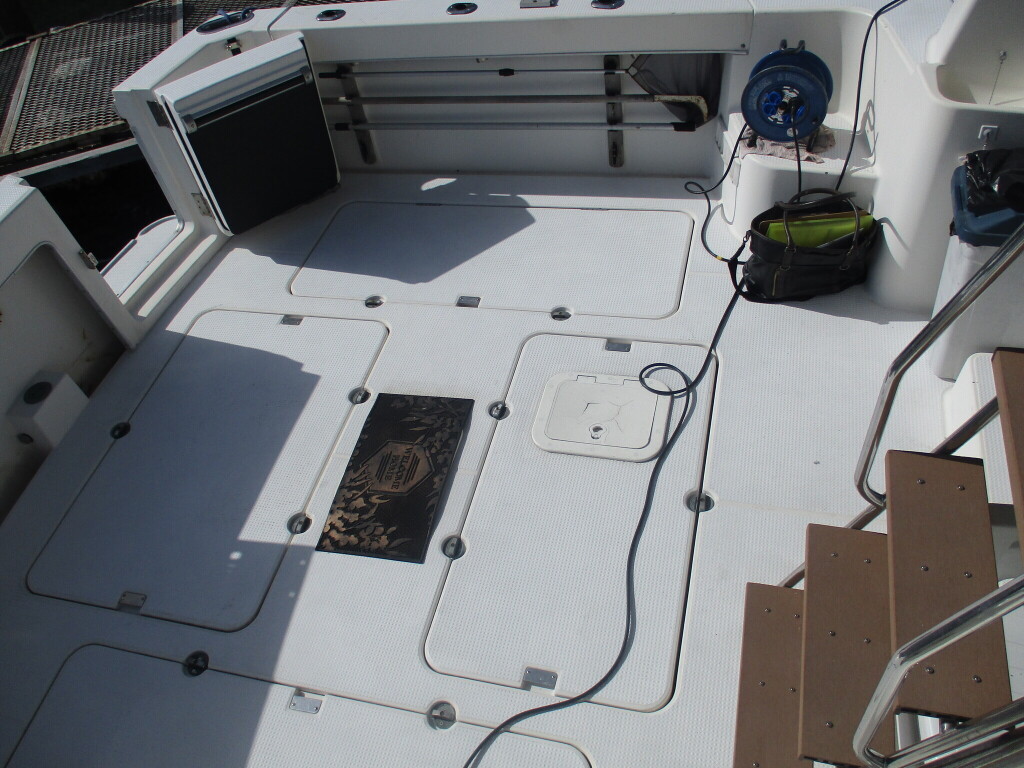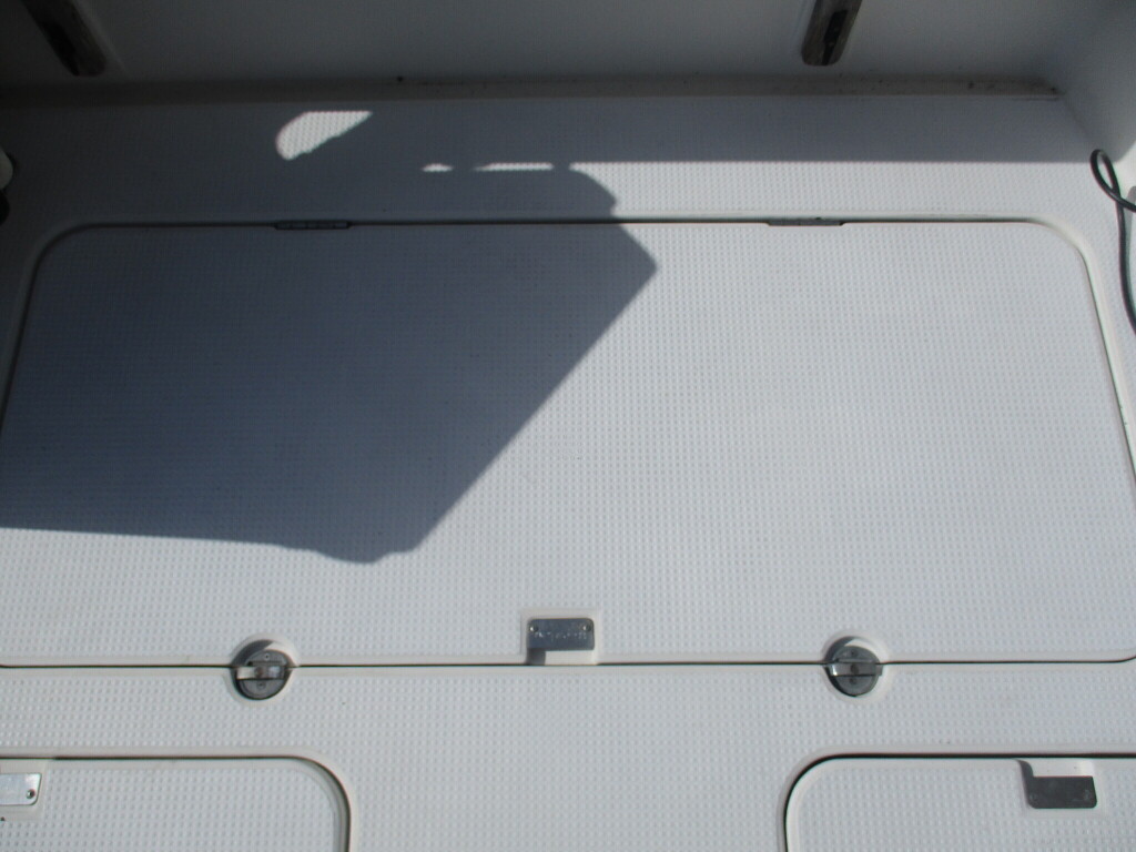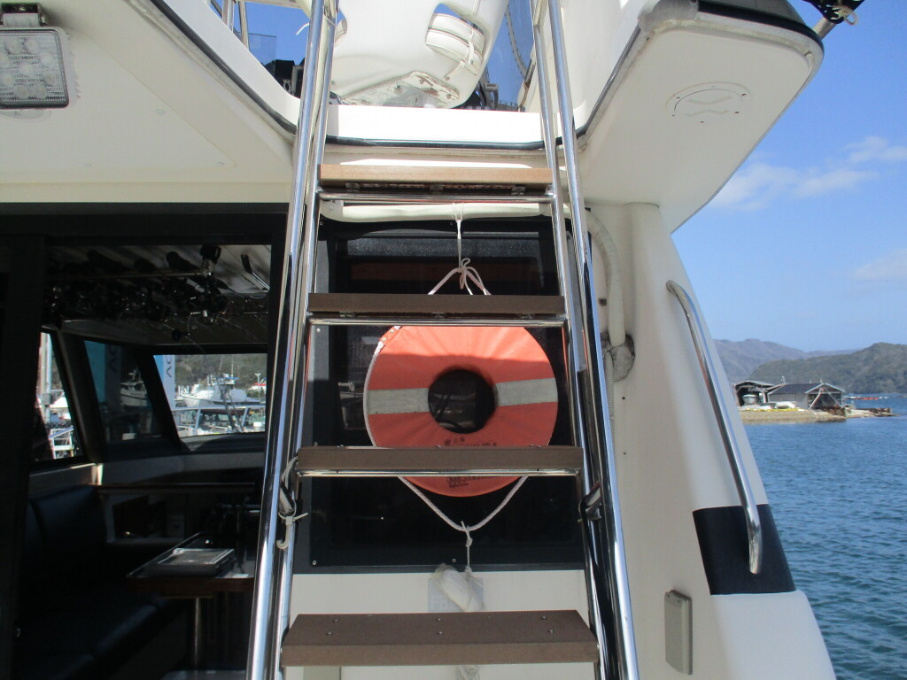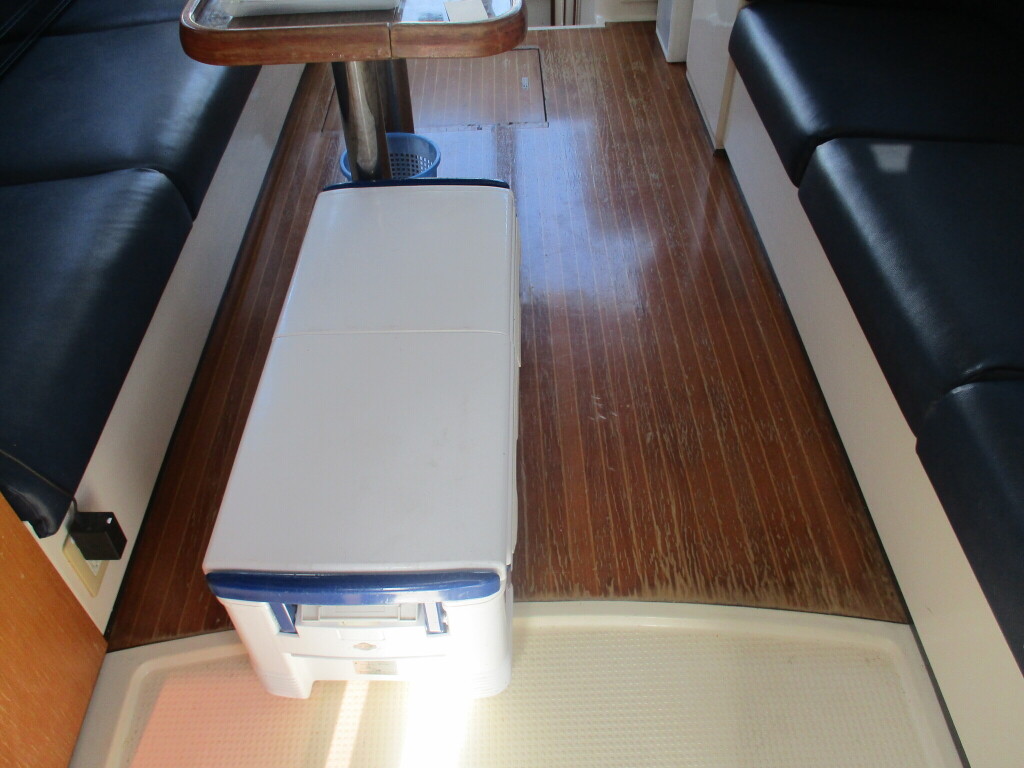 本艇はバブル絶頂期に設計され販売された国産最上級クルーザーです。外装、内装ともしっかりとした造りになっています。取材の印象はとてもきれいでした。年式なりのキズ、ヤレは多少ありましたが大きなキズ、割れなどは見当たりませんでした。FBのサイドエンクロージャーは少しくすみがありましたがフロントのアクリルは交換されているようでとても綺麗に前方確認出来ました。前内も船齢による劣化はありましたがそれでも綺麗な状態を保っていると思われます。メンテナンスもマリーナ、オーナー様共細かくされているそうです。エンジンもとても安定していて特に異音などもありませんでした。静穏性の発電機2.8KWが装備されており船内で100Vが使用できます。家庭用エアコンも装備されていますので快適にクルージングできます。現オーナー様が購入されたときからオートパイロットが装備されていたそうですが使用したことがなく動作未確認になります。まだまだ現役で十分に楽しめるクルーザーです!
