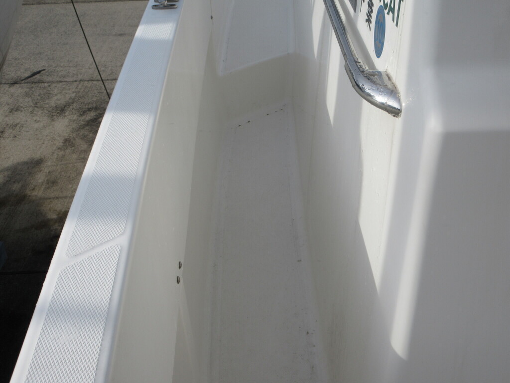 キャビン両サイドと後部デッキに設置されておりますロッドホルダーは次の船に移設されるため、全て取り外しされるそうです。