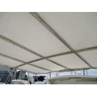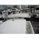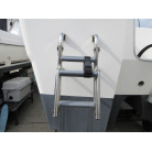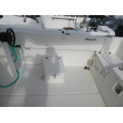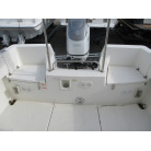 後部デッキには日除けオーニング、アフトステーション、陸電コンセント、デッキウオッシュ、イケス、電動リール電源2カ所、スイミングラダーが装備されております。