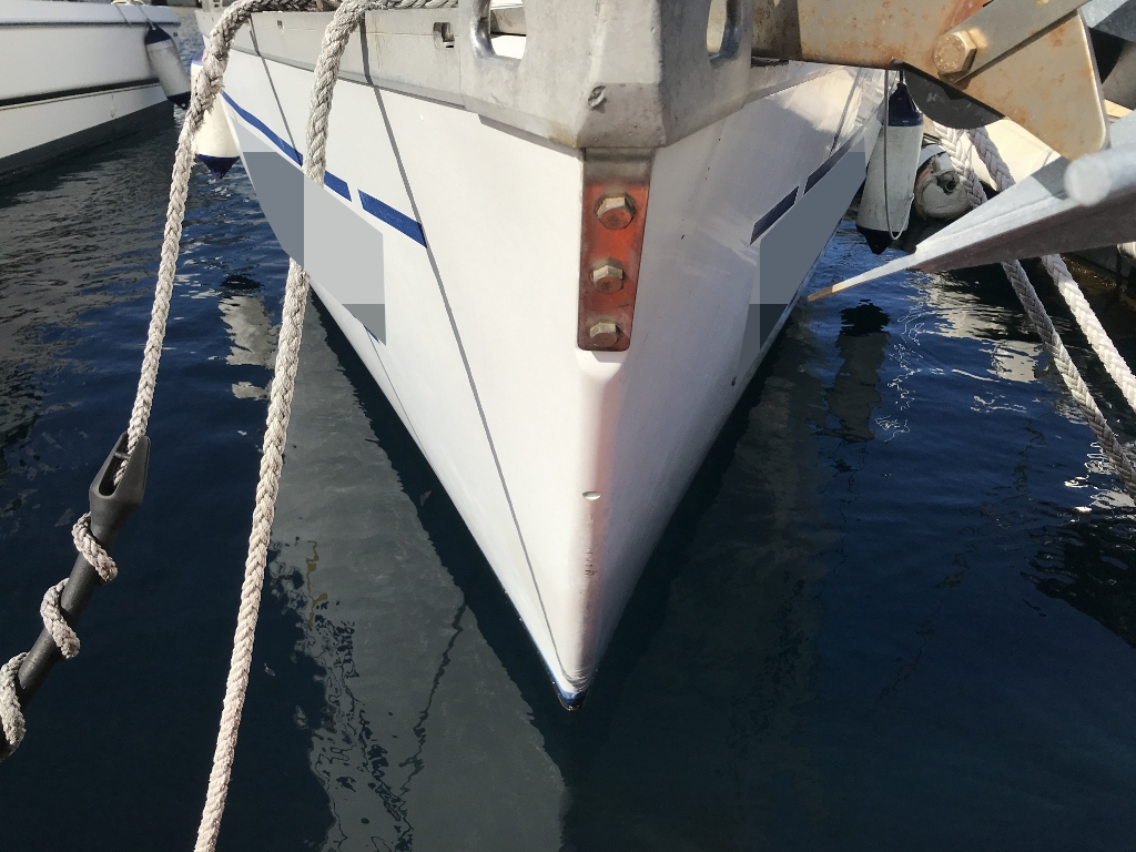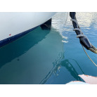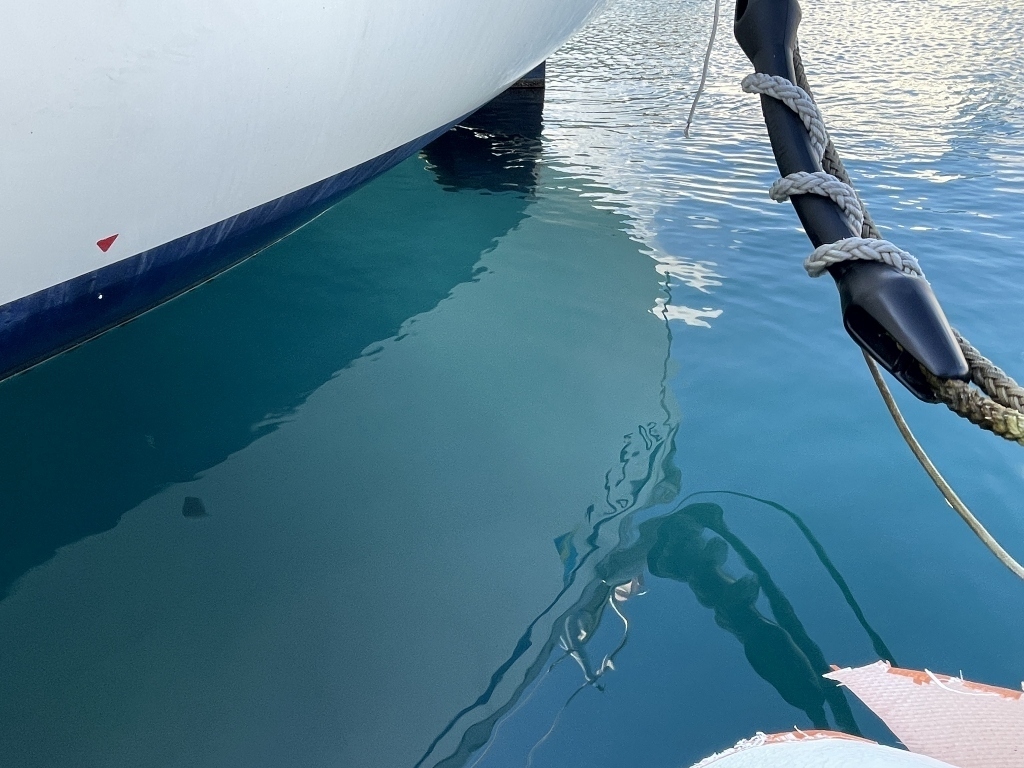 船底は昨年上架していないので、若干喫水ラインに細かな貝類、海藻が付着している状態が見えました。