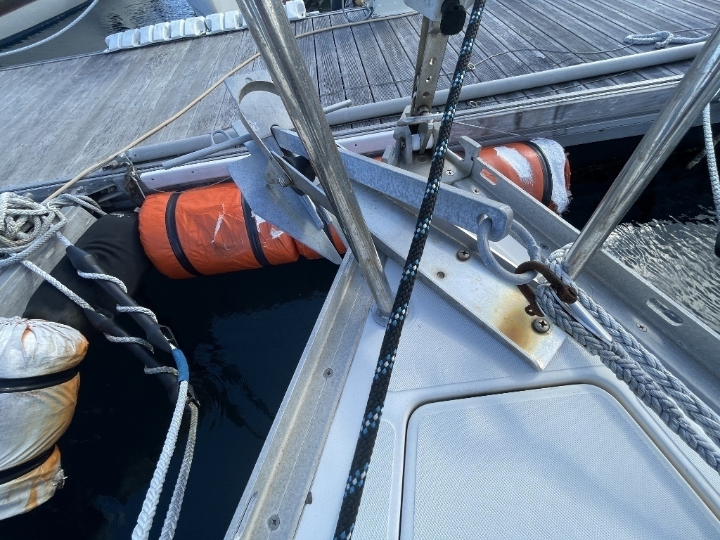 - ハリヤードウインチは現在の物を取り外し、代替品を取り付け。