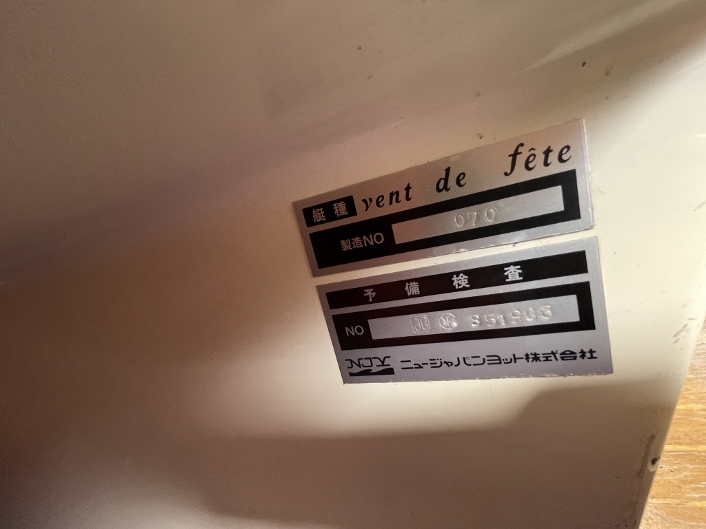 1985年(昭和60年)7月新造・進水のニュージャパンヨット VENT DE FETE 30です。