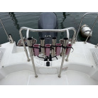 アフトデッキには、モーターウェルレールなどが設置されていますので、キャスティングの際に重宝しそうです。また、スイミングステップとラダーが設置されていました。