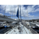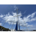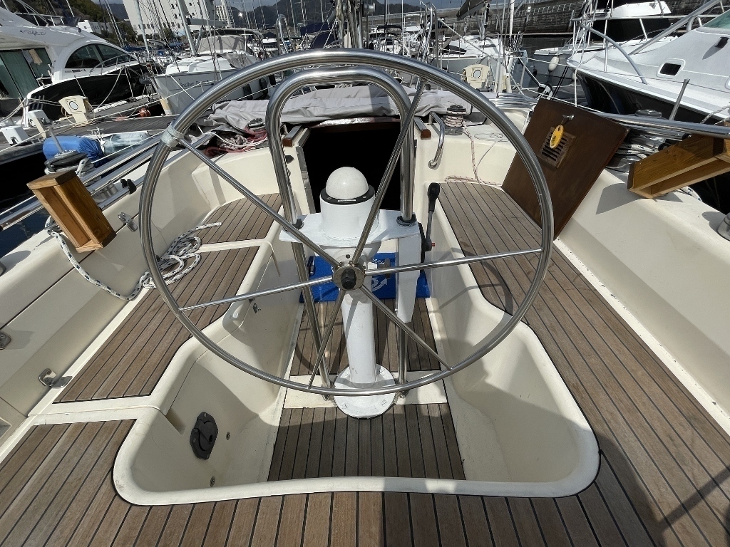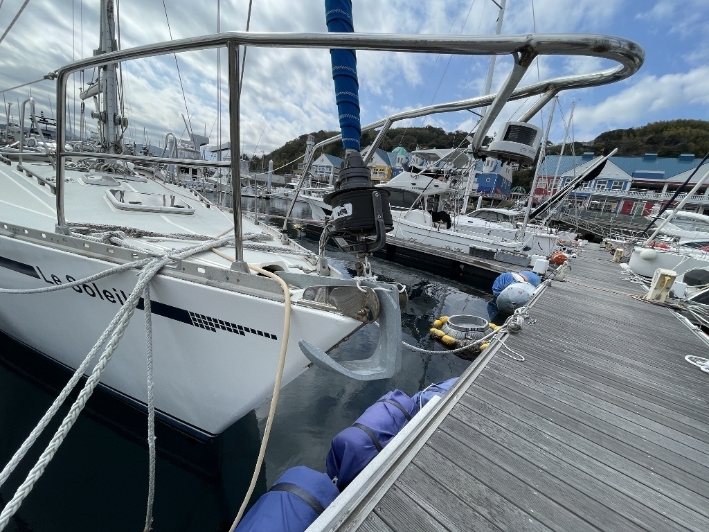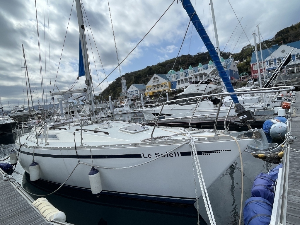 こちらのヨットは、頑丈なハルとマストを装備した長距離航海によく使われているクルージング艇です。