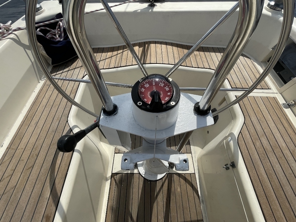コックーピット内はチーク材が張られています、擦り減った感じもなく状態良く見えました。