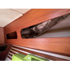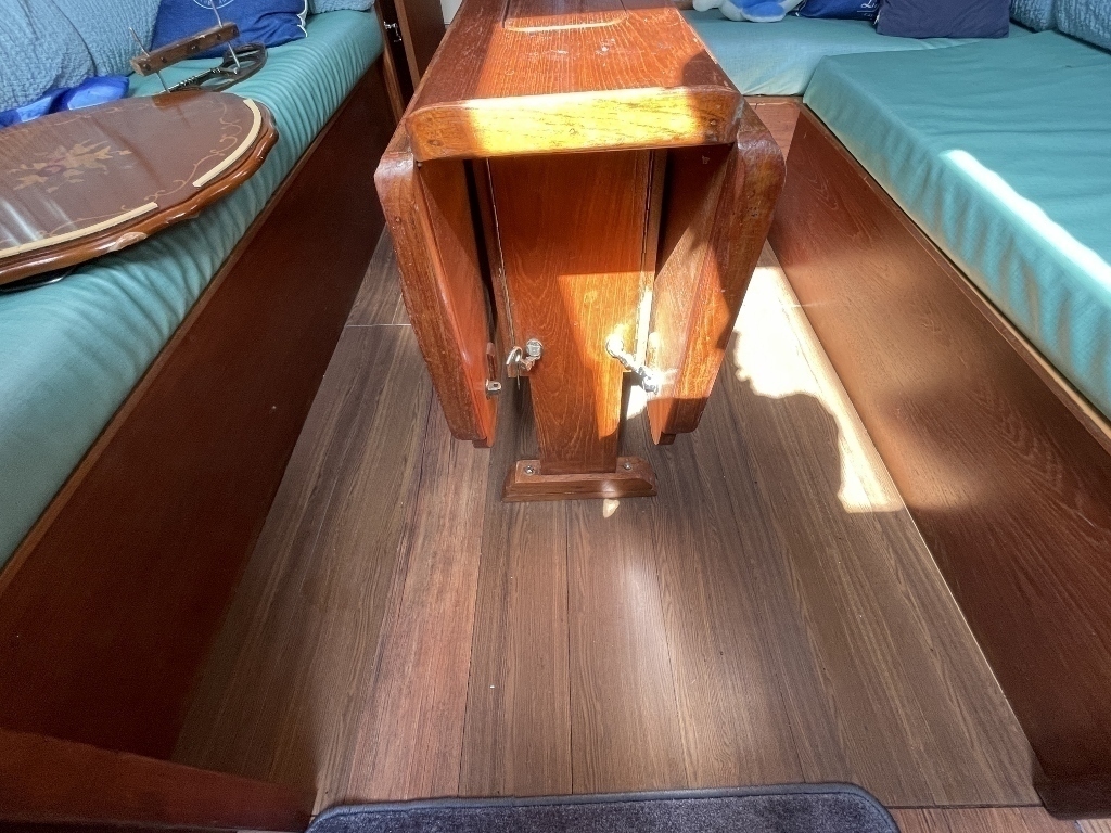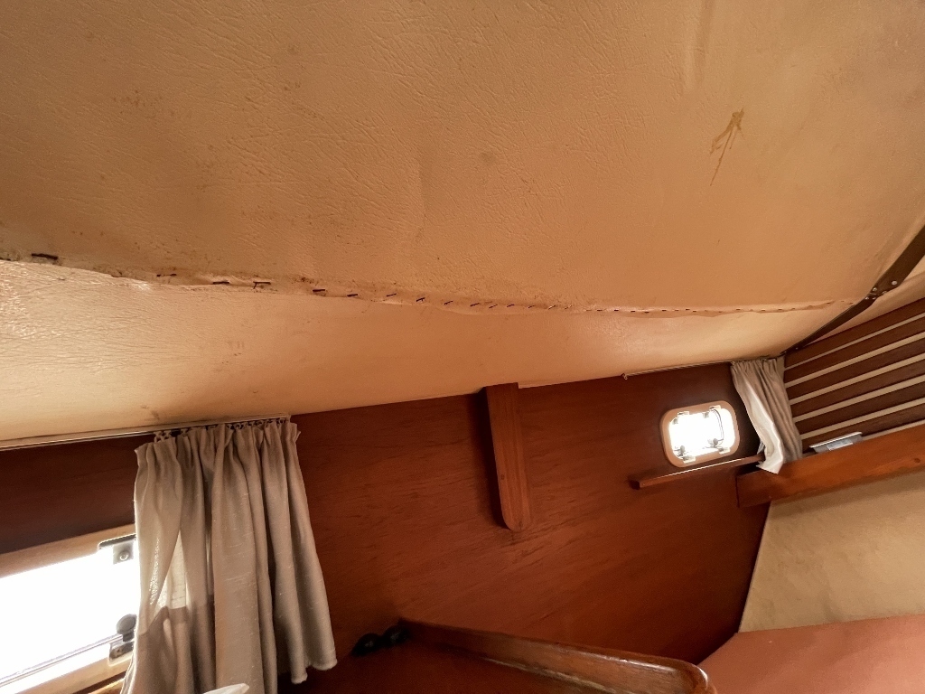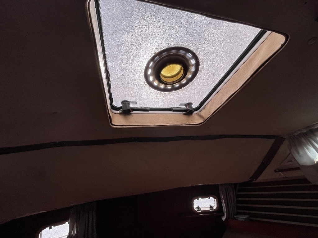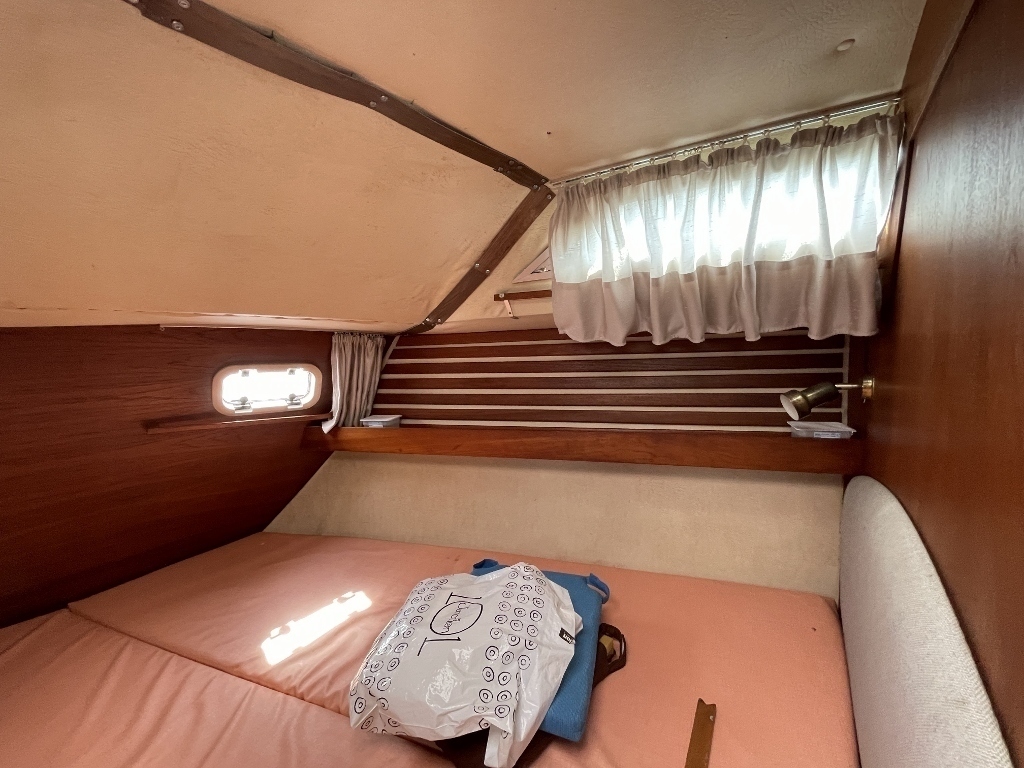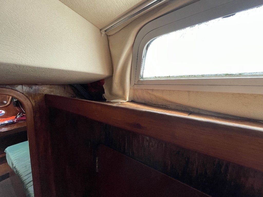 キャビンは広く開放感があり、木を多く使っていて落ち着いた雰囲気でしたが、上部のハッチや窓からの湿気を感じました、シールの打ち直しが必要かもしれません。