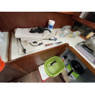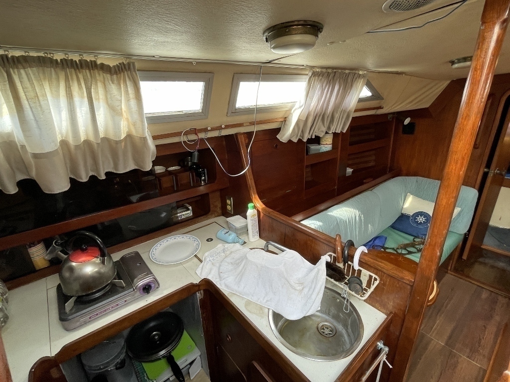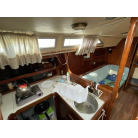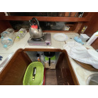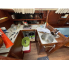 キャビン入り口左舷側にギャレーがあり、右舷側にチャートテーブルを置いています。