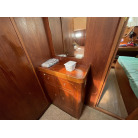 アフトデッキの下にはアフトキャビンになっています、かなり広さがあり、大型ソフアー、鏡付きキャビネット、個室トイレもおかれていました、又こちらのキャビンはドアーでキャビンから仕切られています。