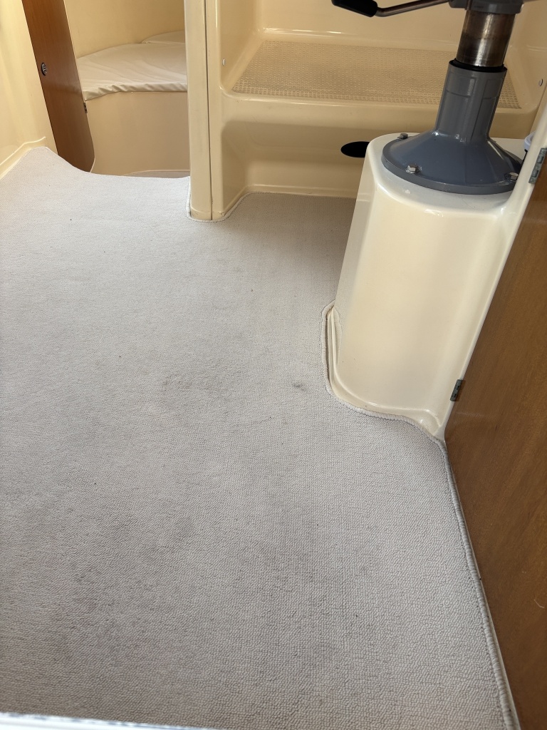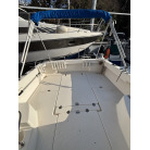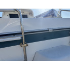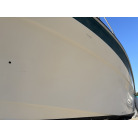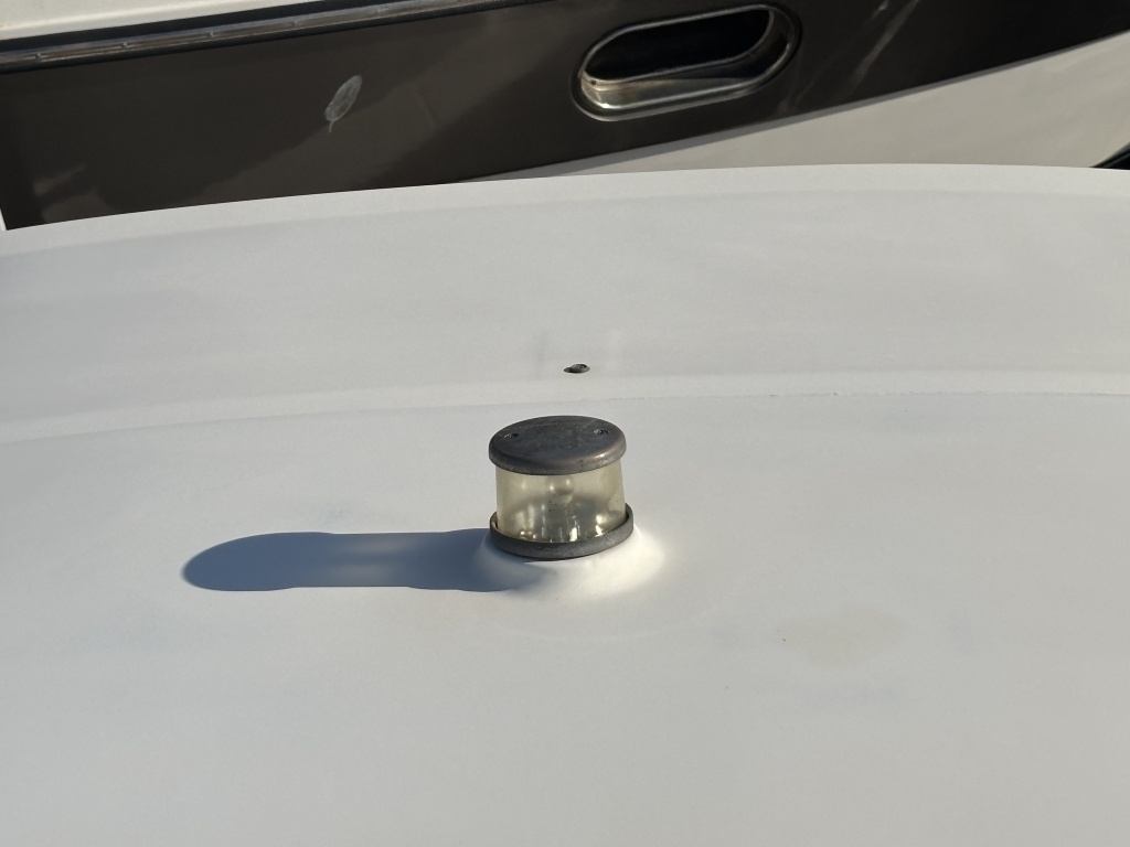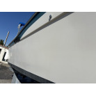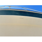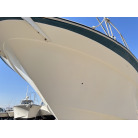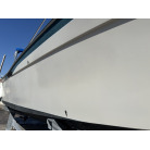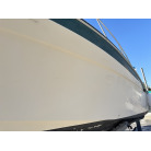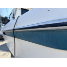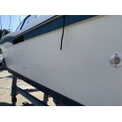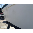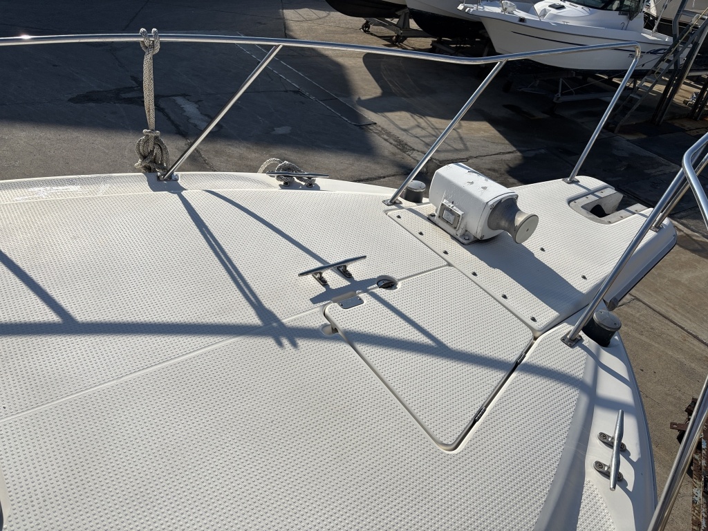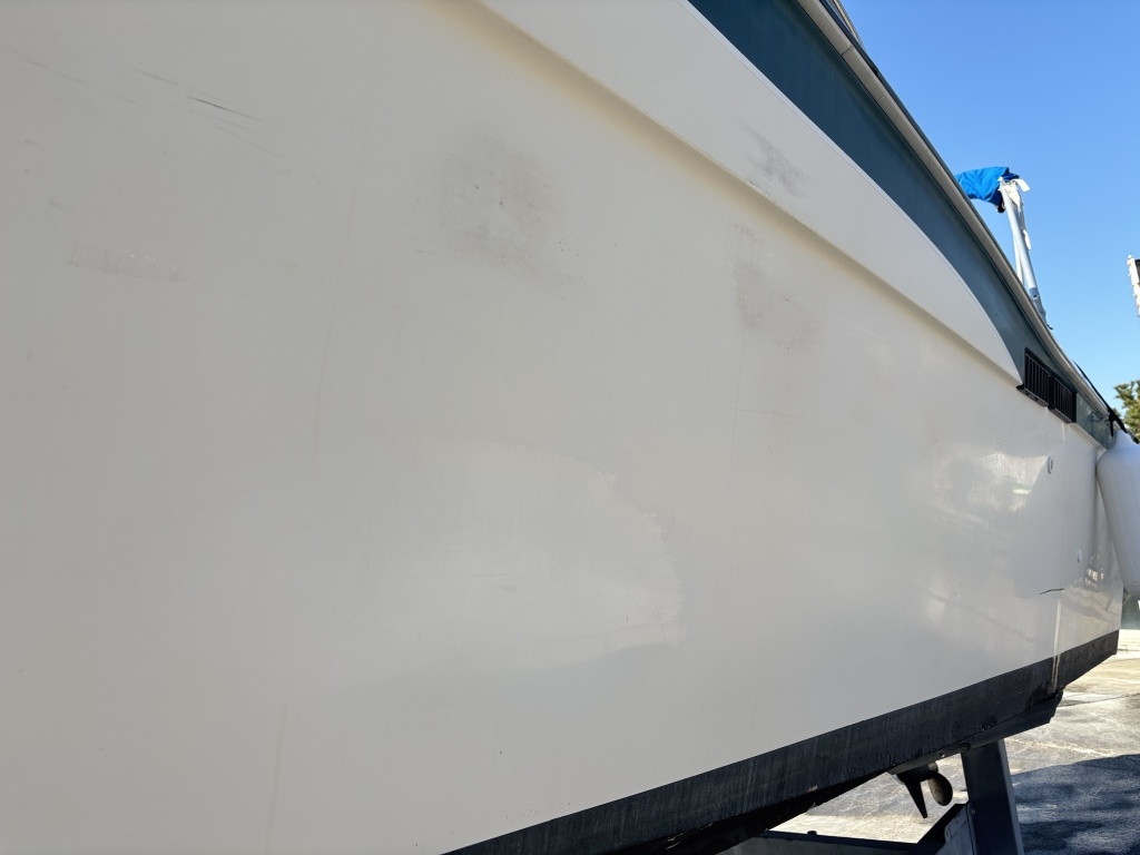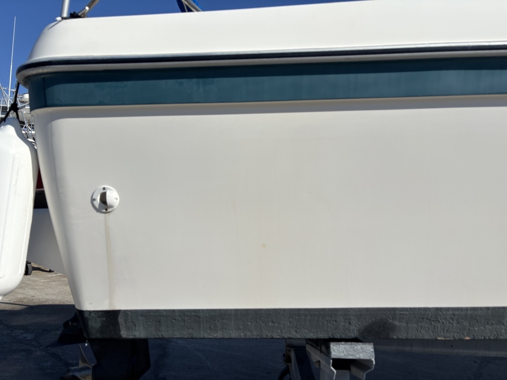 平成7年(1995年)新造進水から約30年が経過しているため、ハルやキャビン外側のFRP表面には、紫外線や潮風によるクスミや色褪せ(艶引け)など、年式相応の「やれ感」が見受けられます。