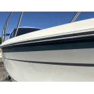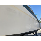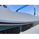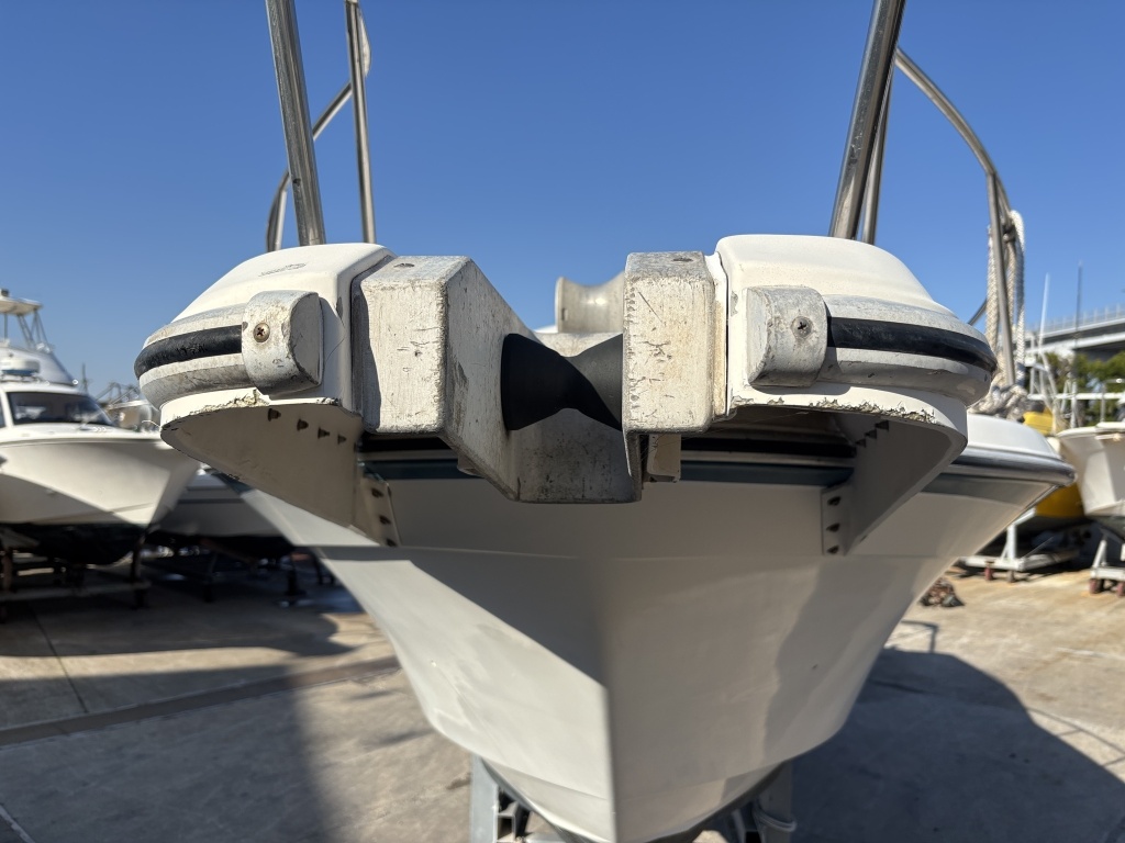 特に中古艇で懸念されがちな「ガンネルゴムの剥がれ・浮き」も確認できず、しっかりと船体に定着しています。バウ(船首)周りなどに軽微なスレや塗装の剥がれ等はございますが(写真1枚目参照)、バンパーとしての機能は十分に保たれており、そのまま問題なく継続使用いただけるレベルです。