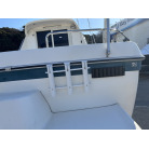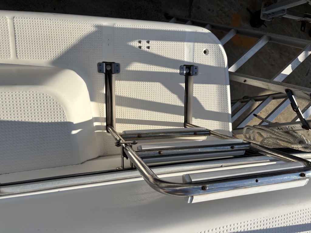 一方で、船尾にはトランサムデッキとボーディングラダー(乗降用はしご)が備わっているため、海へのアクセスが非常にスムーズです。