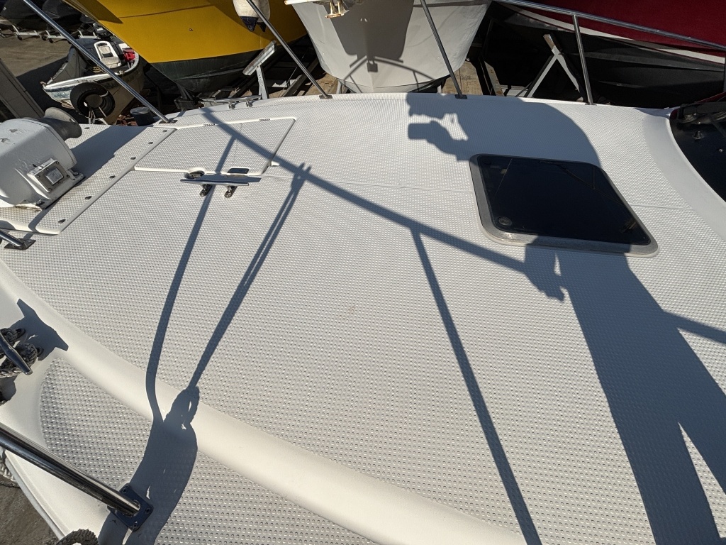 デッキ上およびキャビン上部にはスカイハッチも備わっており、船内への採光や換気に役立ちます。