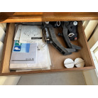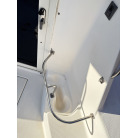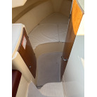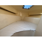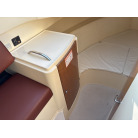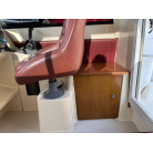 収納: 左舷L字シート下、操船席後方の木製キャビネット(引き出し付き)、バウバース手前の左舷側など、各所に実用的な収納スペースが確保されています。