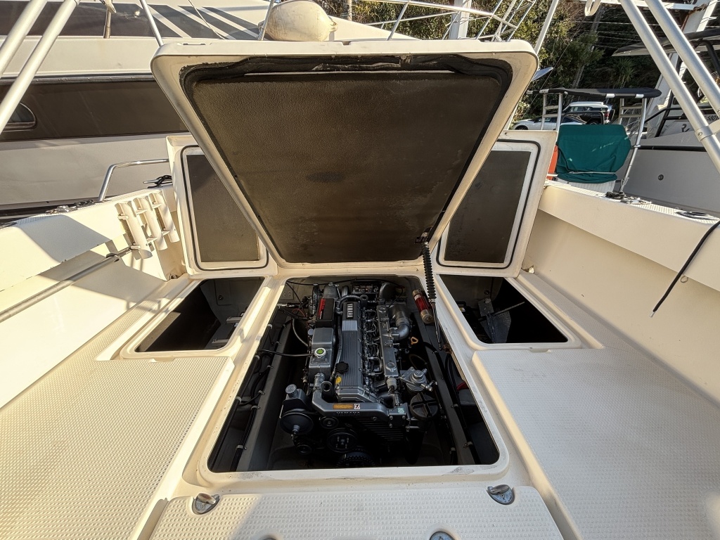 船体やエンジンルーム内のコンディションも、年式相応の使用感こそあるものの、目立つような大きなダメージや酷いサビなどは見受けられず、全体的にクリーンで大切に扱われてきた印象を受けます。